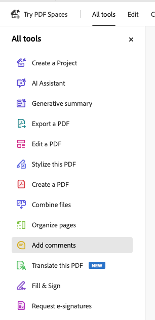 Then open adobe acrobat, click all tools, Add Comments
